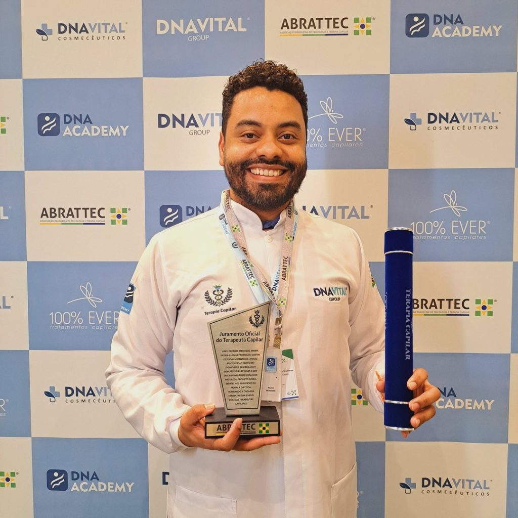Eu sou muito grato de fazer parte da família DNA. Vocês me surpreenderam tanto, de muitas formas positivas. Além de profissionais, vocês nos acolheram, nos deram todo o seu tempo, carinho, amor e dedicação. Eu me interessei na terapia capilar para não só atender clientes, mas para atender os pacientes e dar toda essa energia em troca, esse amor e essa cura que vocês me mostraram que é possível. Senti que estou no caminho certo. Gratidão por tanto e por tudo! <3